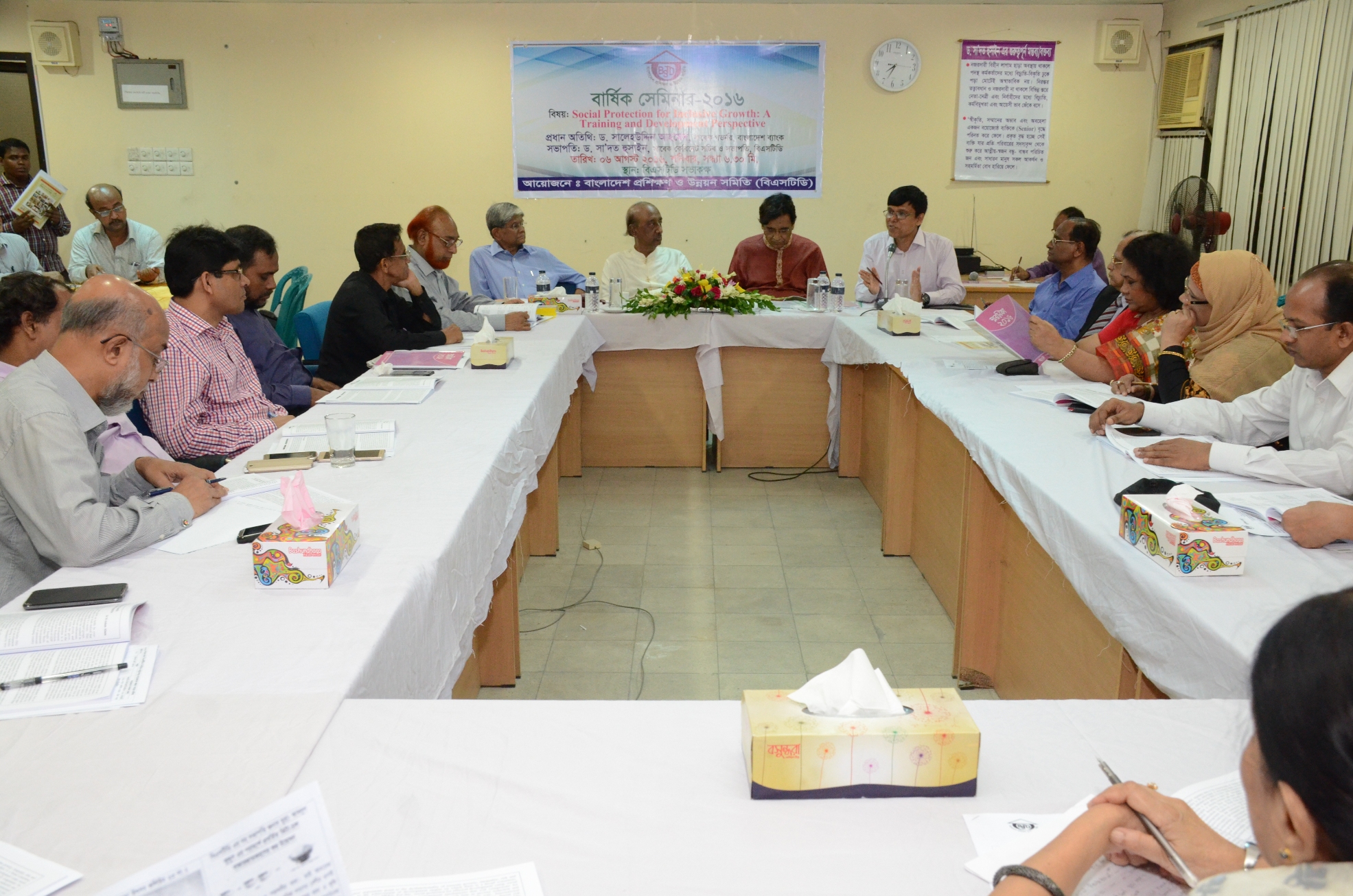 বাংলাদেশ প্রশিক্ষণ ও উন্নয়ন সমিতির উদ্যোগে গত ০৬ আগস্ট ২০১৬, শনিবার সন্ধ্যা ৬:৩০ মি. বিএসটিডি কার্যালয়ে সমিতির বার্ষিক সেমিনার-২০১৬ অনুষ্ঠিত হয়। সেমিনারে Social Protection for Inclusive Growth: A Training and Development Perspective শীর্ষক একটি নিবন্ধ উপস্থাপন করেন বিএসটিডি’র সহ-সভাপতি এবং গণপ্রজাতন্ত্রী বাংলাদেশ সরকারের সচিব ড. এম আসলাম আলম এবং সেমিনারে প্রধান অতিথি হিসেবে উপস্থিত ছিলেন বাংলাদেশ ব্যাংকের সাবেক গভর্নর ড. সালেহউদ্দিন আহমেদ। অনুষ্ঠানে সভাপতিত্ব করেন বিএসটিডি’র সভাপতি এবং সাবেক মন্ত্রিপরিষদ সচিব ড. সা’দত হুসাইন। সেমিনারের নির্ধারিত বিষয়ের উপর আলোচনা করেন যথাক্রমে বিএসটিডি’র সহ-সভাপতি জনাব মুহাম্মদ আব্দুল কুদ্দুস, সহ- সভাপতি (প্রশাসন) জনাব মোশারফ হোসেন ,সহ-সভাপত বেগম নীলুফার বেগম ,যুগ্ন-মহাসচিব আলহাজ্ব বিলকিস বেগম এবং নির্বাহী কমিটির সদস্য আলহাজ্ব নিলুফার করিম আহমেদ এবং বিএসটিডি’র সদস্য ড. সৈয়দ নকীব মুসলিম। এছাড়া আলোচনায় অংশ নেন বিআইএম এর পরিচালক ড.সাহাদাৎ হোসেন মাহমুদ বিএসটিডি’র সদস্য জনাব মাইনুদ্দিন,বেগম নুরুনাহার কবির , জনাব তপন কুমার নাথ, ড. দৌলতুন্নাহার,প্রমুখ। নৈশ্য ভোজের মাধ্যমে অনুষ্ঠানের সমাপ্তি ঘটে।